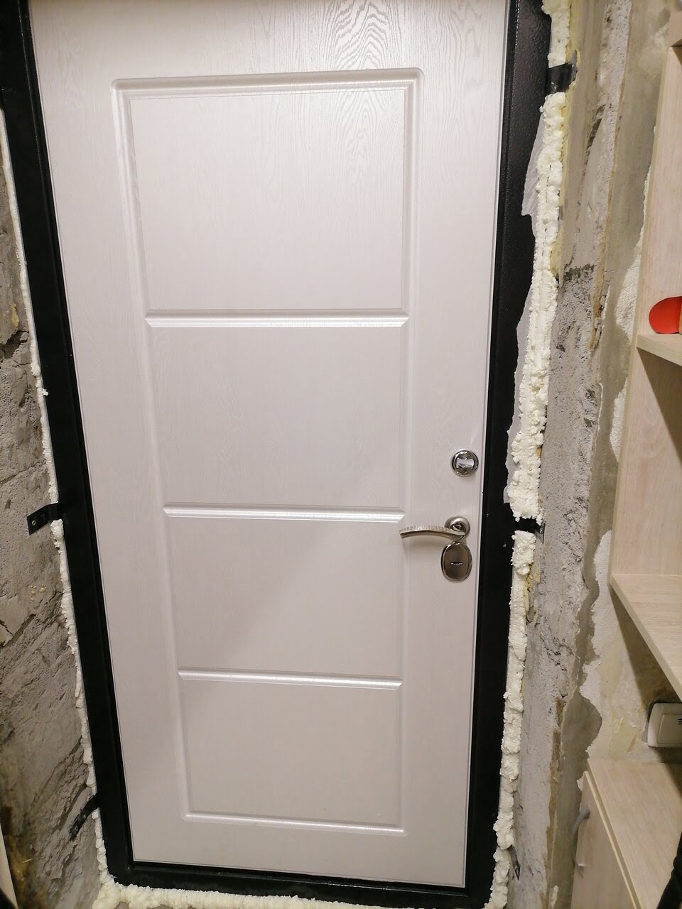 Приобрел модель с отделкой из МДФ с двух сторон, доставку и установку не стал заказывать, решил сам устанавливать. Что могу сказать по качеству? Геометрия идеальная, хорошая сталь толщиной 1,5 мм, классные 2 замка фирмы Border в базовой комплектации. Под заказ установили еще один сувальдный замок. При толщине полотна 50 мм общая глубина коробки составляет 75 мм. Это очень хорошо. Был опыт работы с входными дверями одной иностранной фирмы (не буду называть, чтобы не делать рекламу). Так вот там толщина короба почти в два раза больше!